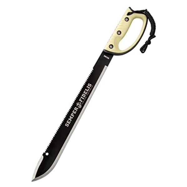 United Cutlery USMC Semper Fi Sawback Machete Knife with Sheath | Full-Tang Machete | 17 1/2" Non-Reflective Stainless Steel Blade | Saber-Style Handguard Handle | Modern Tactical Weapon - 24” Overall