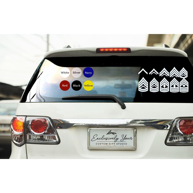 Add a little Marine Corps pride to your vehicle with our vinyl rank insignia decals! This listing is for a pair of vinyl decals. Each decal is roughly 3 1/2x3 inches. Decals feature an image of the USMC Staff Sergeant rank insignia. These decals are die cut from a high quality outdoor grade vinyl. Each decal comes with transfer tape already applied to make application a breeze! Check out our complete line and collect the whole set! Frequently Asked Questions: How do I apply the decal? Just simply thoroughly clean the surface to be applied with alcohol and allow to dry. Remove the backing from the decal and apply to the surface very gently, smoothing out any air bubbles as you go by applying medium pressure with a credit card or drivers license, then remove the transfer tape from the surface of the decal at a 45 degree angle. Instructions for application are included with your order. ***This Web site is not an official U.S. Marine Corps (USMC) site, however, the owner of this site is an official licensee of the USMC.
