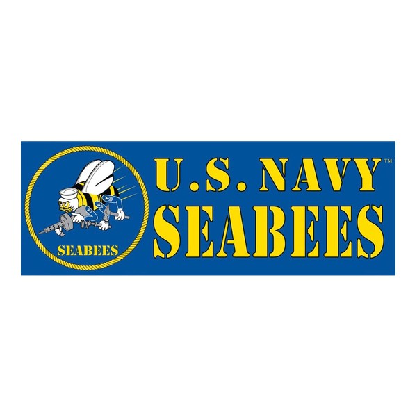 USN Seabees Bumper Sticker, 3 1/2" x 10" Size, 1 Pack