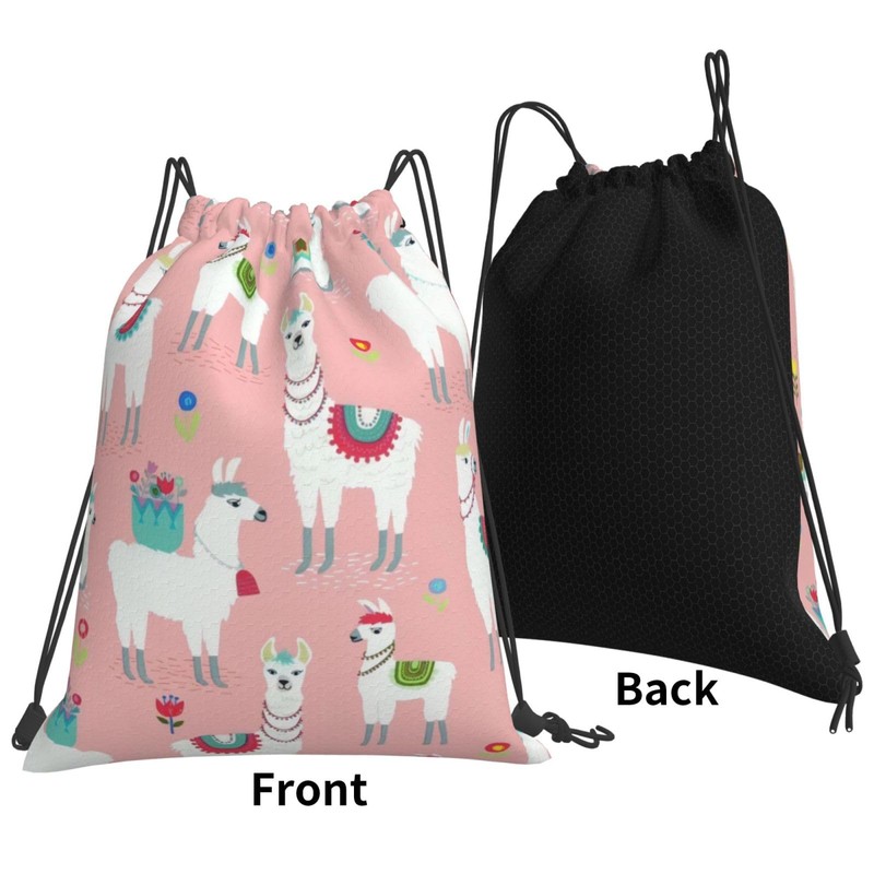 USONEPT Alpacas And Flowers Drawstring Backpack pink Backpacks for Women Men Gym Drawstring Bag Yoga Sport String Bags Beach Sack Bag