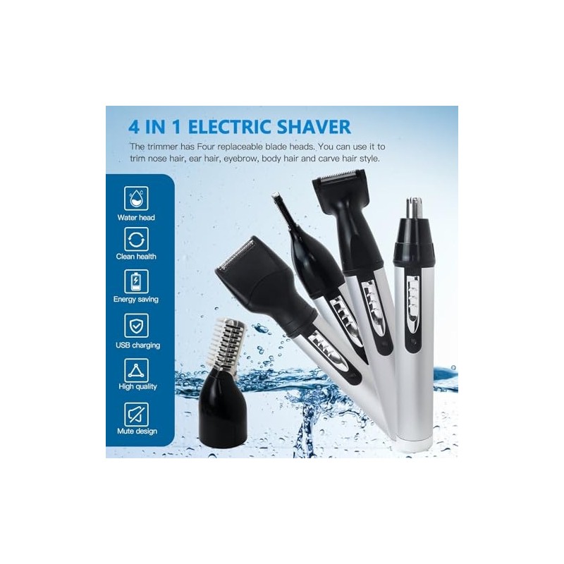 USonline911 2025 Version 4 in 1 Rechargeable Eyebrow Ear Nose Beard Trimmer Set Hair Clipper Shaver USB
