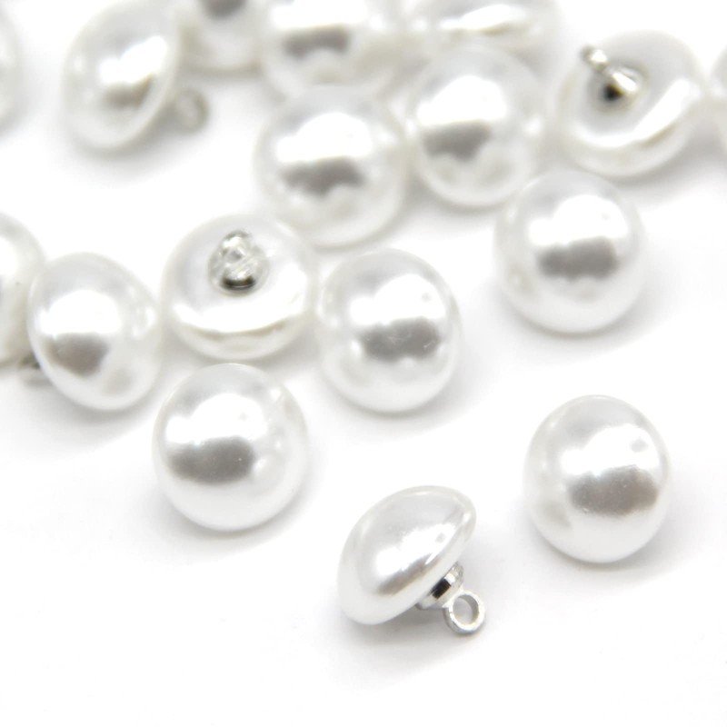 - ★ 【 Details 】 10mm(3/8"), plastic faux pearl buttons, white semi-circular mushroom pearls buttons, with white zinc alloy shank. The set contains 40pcs buttons.