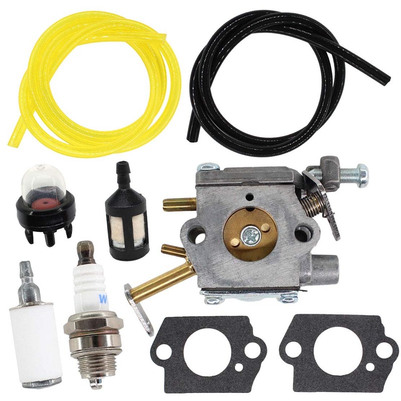 - You will receive: 1 carburetor + 2 gaskets + 1 primer bulb + 2 fuel filters + 1 spark plug + 1 black fuel line + 1 yellow fuel line
