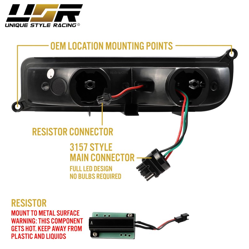 - ✔️ 《 PLUG AND PLAY READY 》New set (Left + Right) Front Black Housing Turnsignal Lights with built in Amber Sequential for Signal and White Switchback for DRL/Parking LED with x2 Resistors is included, Recommended to Mount to Metal Surface since Resistor gets Hot, Keep away from plastic and Liquids. Just transfer stock sockets making this a True Plug-n-Play. A Quick and easy DIY install with basic tools. No re-wiring or modifications needed. No Error after install.