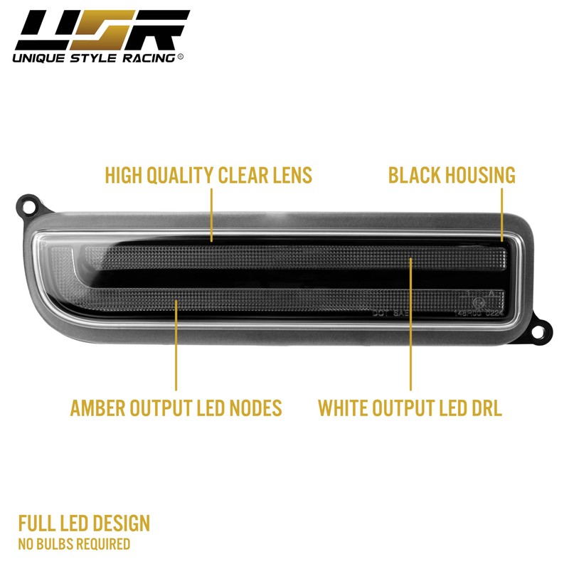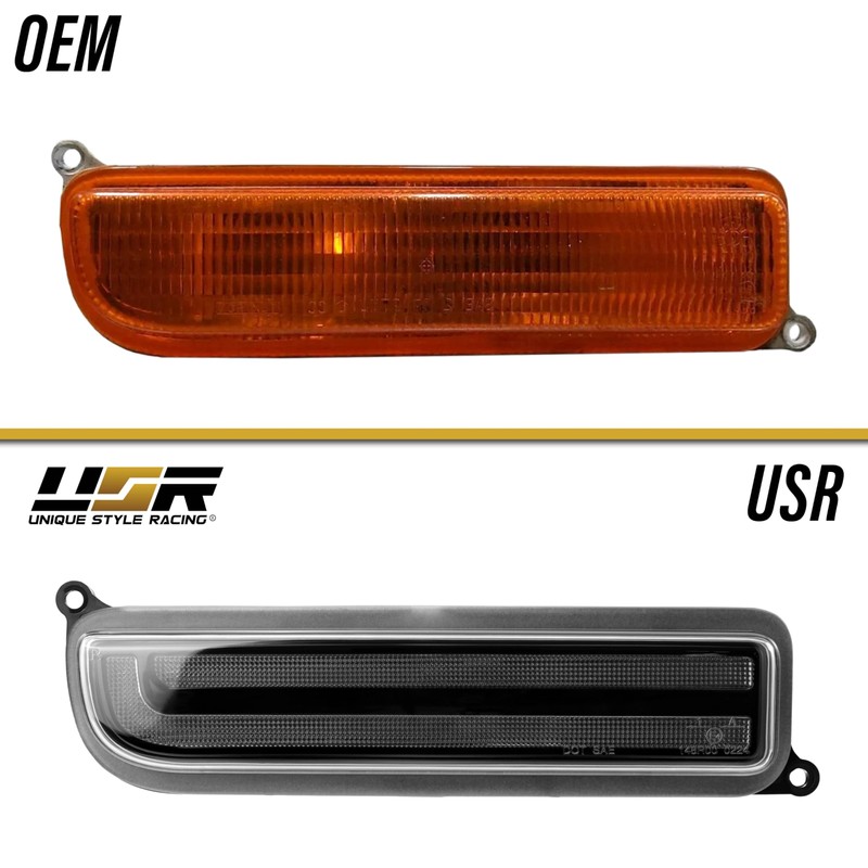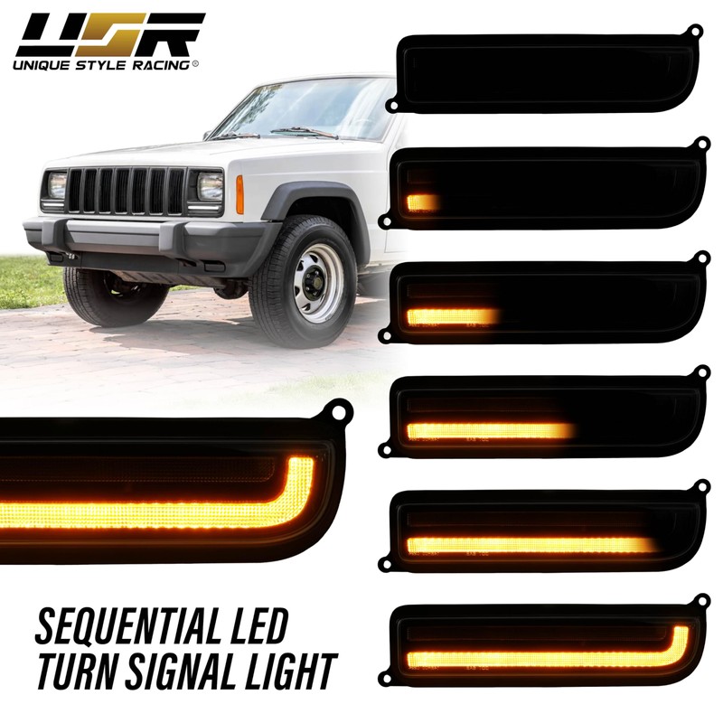 USR 97-01 XJ SUV Turn Signal Light – Front Sequential Signal Lamps (Left + Right) Pair - Compatible with 1997-2001 Jeep Cherokee XJ SUV All Models (BLACK HOUSING w/LED AMBER-WHITE DRL SWITCHBACK)