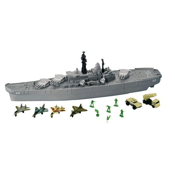 This deluxe playset is centered around a detailed model of the USS New Jersey. Durable plastic. Measures 28" long. Also includes: 4 diecast metal aircraft, 2 diecast metal tanks and 6 plastic soldiers.