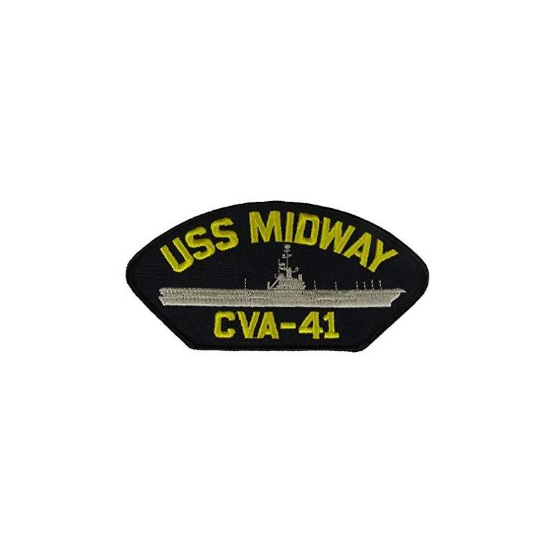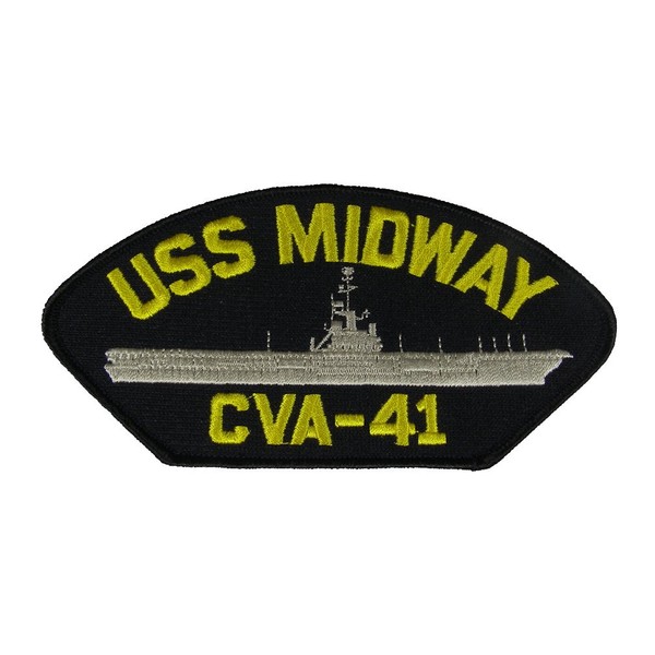 - 6" wide x 3" tall Patch - Very High Quality Embroidered USS MIDWAY CVA-41 Patch - Gold and Silver on Black Background - Very Druable with Iron On Backing.