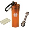 - RELIABLE: Durable, waterproof, anodized aluminum case with O-ring seal to keep contents safe and dry; Micro SparkWheel fire starter is made of high-quality brass and has 3 replacement flints; Carabiner clip to easily attach to gear.