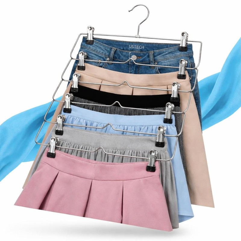 - 〘Patented Space Saving Skirt Hanger〙The patented 6-Tier Hanger can hang six skirts, pants, slack at the same time, maximize to save your closet space.Also an ideal hanger for jeans, trousers, dresses. You can even use it as a sock and bag holder if you'd like.