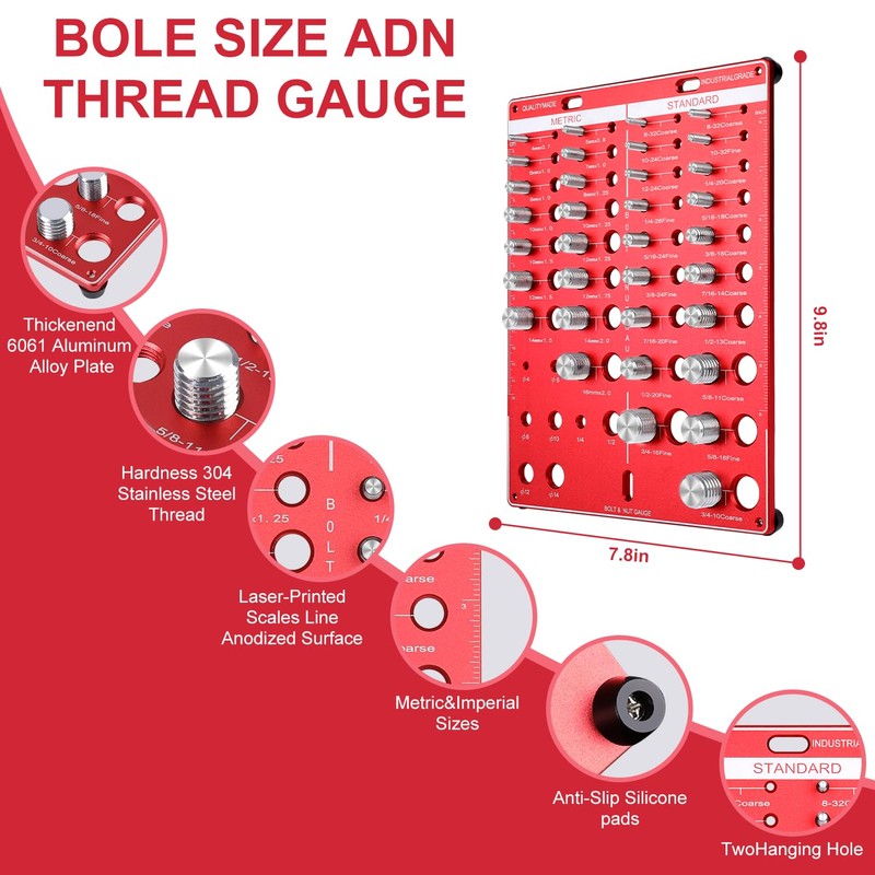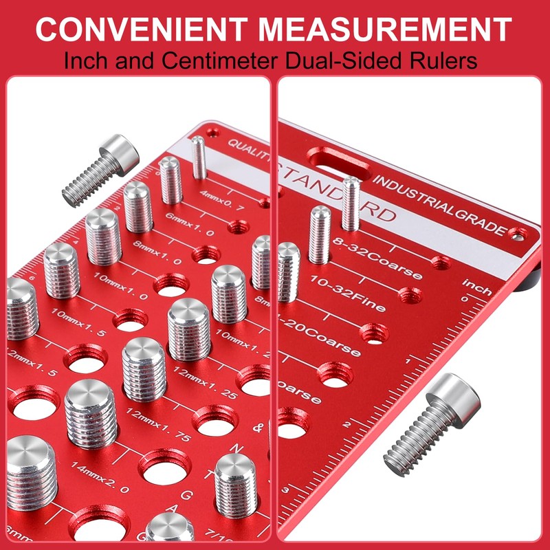- 【Premium Quality】 Our thread checker is made from Aluminium 6061, providing exceptional durability and resilience. The bolt is crafted from SUS 304 stainless steel, known for its sturdiness and resistance to breakage. The measurements on the board are laser-engraved, making them easy to read and resistant to wear over time. It's a must-have tool designed for enduring reliability and convenience