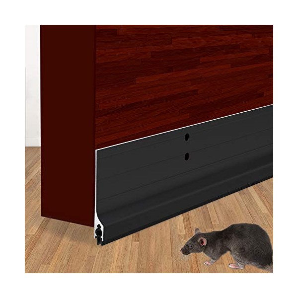 USUKUE Metal Door Draft Stopper 36 Inch Mice Guard Bottom Seal Strip Drafty Blocker, 3.5 Inch High Aluminium Mouse Sweep, Black