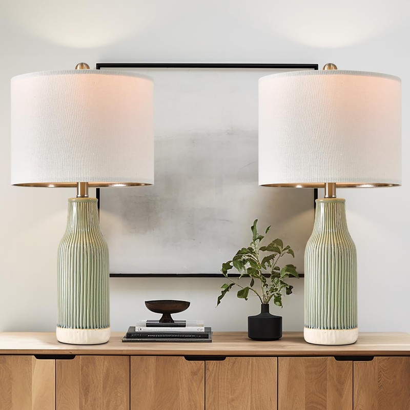 USumkky 23.75" Modern Green Ceramic Table Lamp Set of 2 for Living Room, Farmhouse Bedside Nightstand Lamp for Bedroom Home Office Dorm