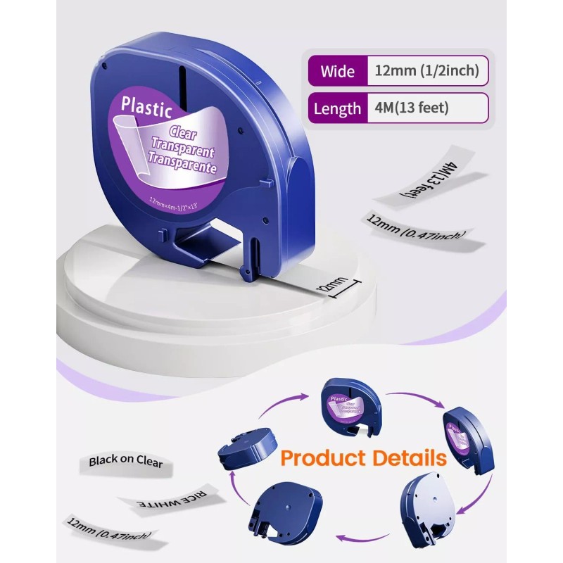 USUPERINK 4PK Compatible Dymo LetraTag Refill 16952 12mm Clear Plastic Label Tape LT-100H