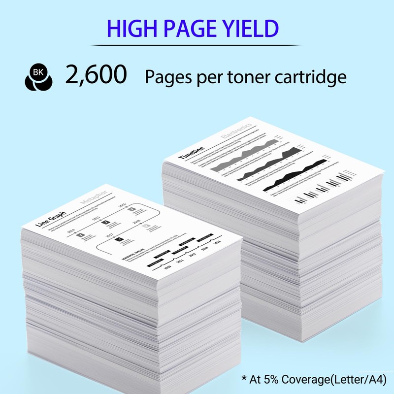 - Expected High yield of 2,600 pages. Approx. cartridge yield in accordance with ISO/IEC 19752 (Based on 5% coverage) (Color: Black)