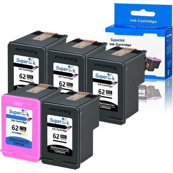 - ▶Package Contents: USUPERINK Remanufactured High Yield Ink Cartridge Replacement for HP 62 62 XL 62 XL C2P05AN C2P07AN with New Chip (4 Black, 1 Tri-Color).