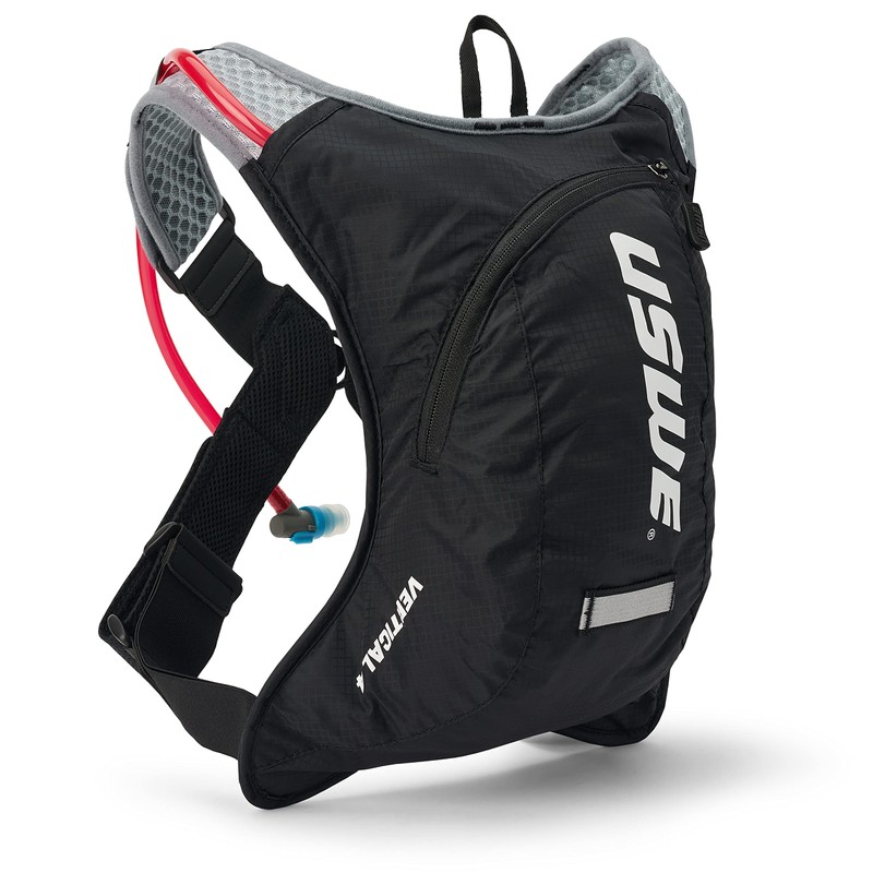 USWE Vertical Hydration Pack - Backpack with 2L/70oz Water Bladder for Trail Running, Motorbiking, MTB and Biking (4L, Black)