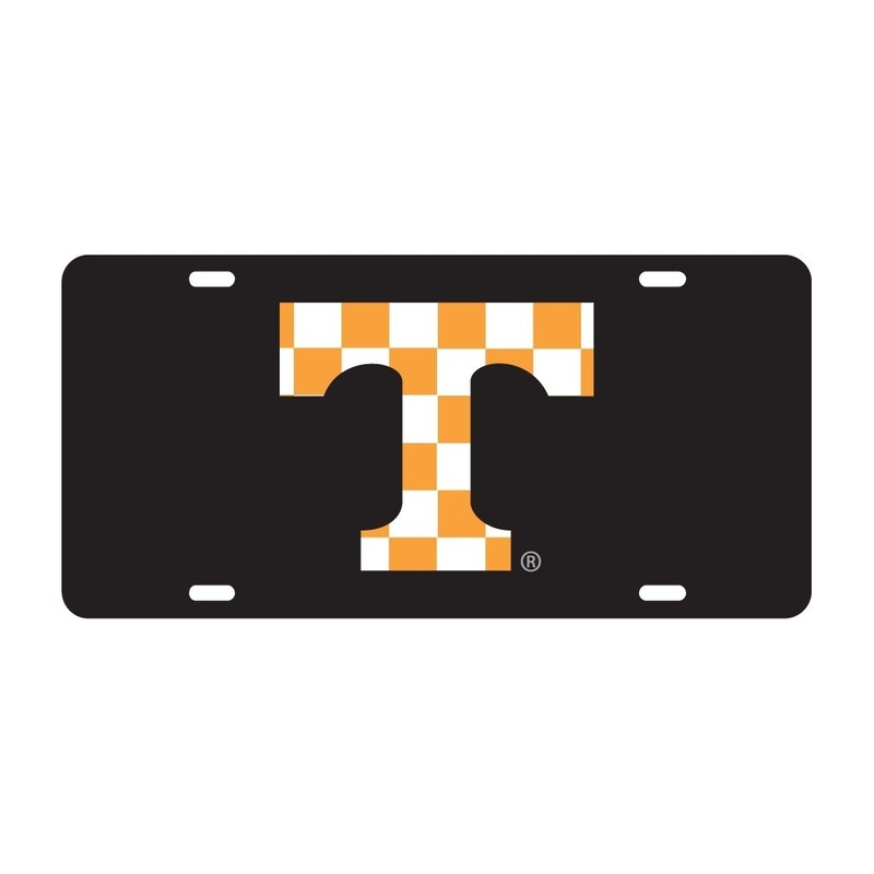 UT Tennessee Vols Black Mirrored Laser Checkerboard License Plate Tag