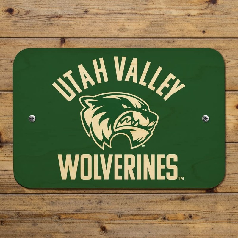 Utah Valley University Wolverines Logo Home Business Office Sign - Wood - 6" x 9" (15.3cm x 22.9cm)