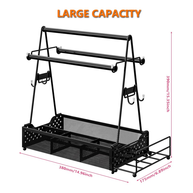 - 【UPGRADING LARGE BBQ UTENSIL】Measures 15.35" x 6.89" x 14.96", The ideal grill tool to carry your grill accessories, Picnic tools and camping supplies, A removable paper towel roll holder for easy storage of all your BBQ, Camping and tailgate supplies, Easily holds of BBQ tools, utensils, napkins, paper towel rolls, spices, condiments, plates, camping cups, spoons, egg rings, etc.