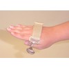 The Utensil Holder has a pocket for holding utensil handles. This universal cuff can hold utensils and other small handle items for people with poor hand strength or grip. The strap can be adjusted to fit your hand by using the Velcro hook-and-loop closure with D-ring thumb loop. The utensil holder pocket measures 3 inches long, 1 inch wide and is sewn closed on one end. The strap is made of Polypropylene webbing material and is easy to clean.To determine the correct size, measure your hand across top of knuckles. The Small Utensil Holder fits 3 ½ to 4 ½ inches, Large Utensil Holder fits 4 ½ to 4 ¾ inches. The spoon is shown for demonstration only and is not included with the Utensil Holder.Utensil Holder Features:Holds utensils for people with poor grip strength.Utensil pocket accepts small handle utensils.Utensil Holder Specifications:Small/Medium Beige fits: 3 ½ to 4 ½ inch wide hands.Large/XLarge Navy fits: 4 ½ to 4 ¾ inch wide hands.Material: polypropylene webbing.