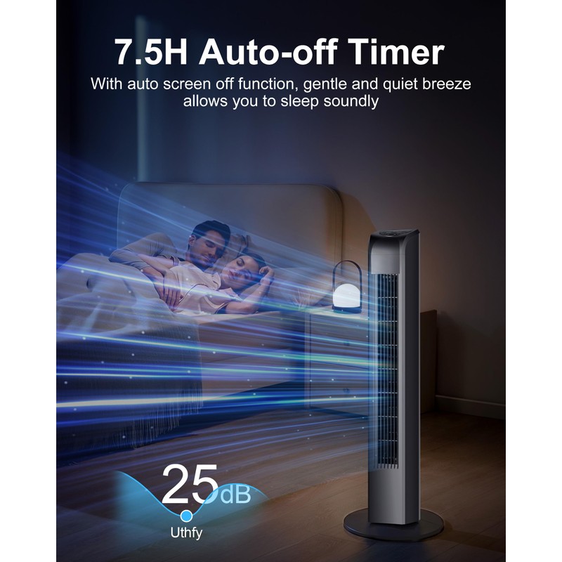 - Easy to Operate: Whether you are sitting on the sofa or lying in bed, you can use the touch control panel or remote control,easily adjust the speed and adjustment mode, or turn on and off the fan and timing (7.5 hours of timing off) function. Without operation in 30s, the control panel is screen-off,and all functions are remained, which is easier to fall asleep for people with sensitivity to light