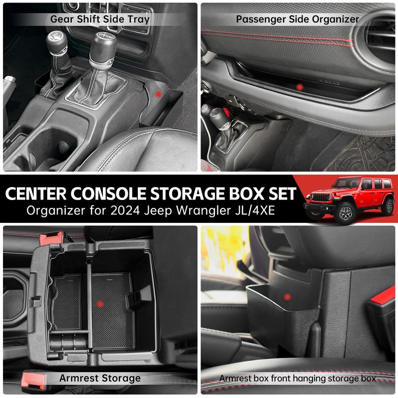 Utiiy Center Console Organizer for 2024 2025 Jeep Wrangler JL JLU 4XE/Gladiator JT Gear Shift Console Side Tray GrabTray Passenger Hanging Armrest Storage Box for Wrangler&Gladiator(24+ 4-piece)