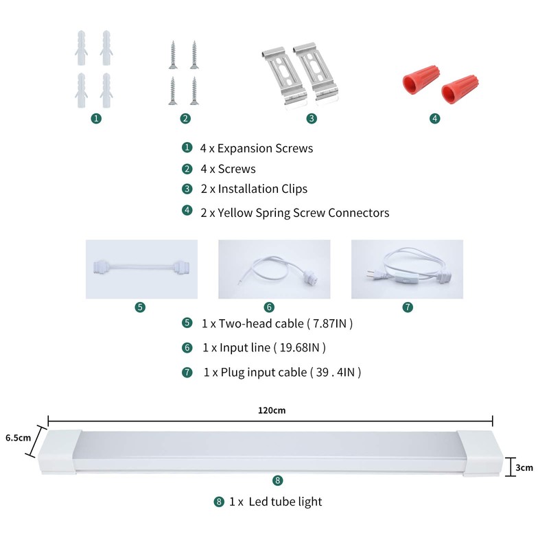 - 【EASY INSTALLATION】This led shop light can be easily fixed with the stainless steel mounting clamps, which can be positioned freely on the lamp,The package include power cord with on/off switch can help you install by PLUG AND PLAY, you can also use the plug input cable to connect your power line to get extension cord or lighting the led tube light by the plug to satisfied your need.