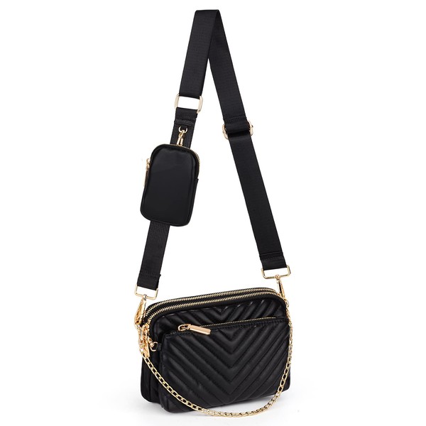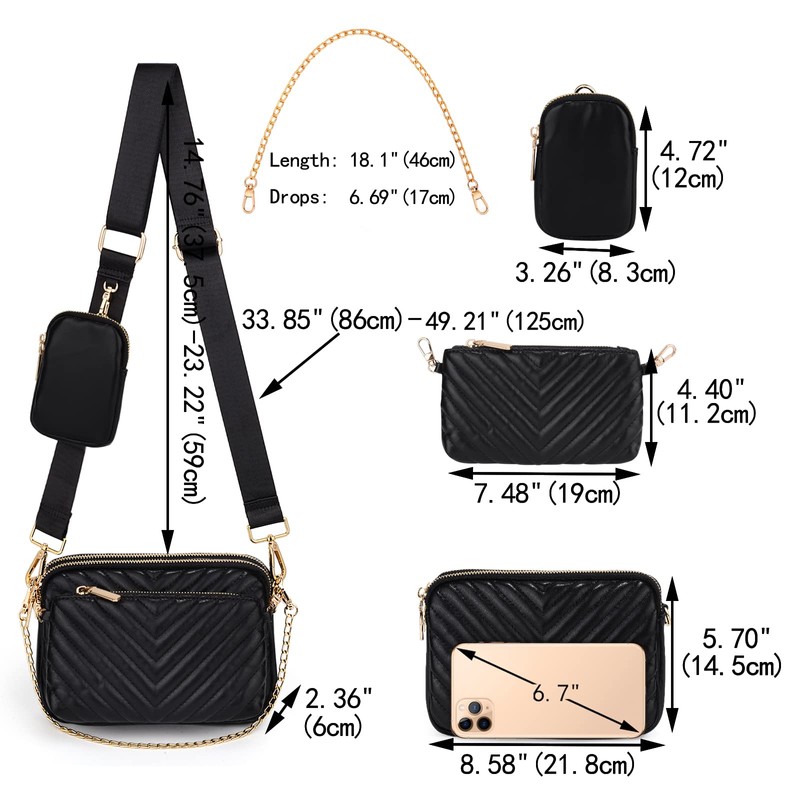 - MULTIPURPOSES - The hybrid cross-body bag comes with 1 removable main purse, 1 removable mini purse and 1 removable small coin pouch. It has both 1 removable gold-tone chain and 1 adjustable/removable wide nylon strap for multiple carrying options. 5 pieces in different match for different styles.