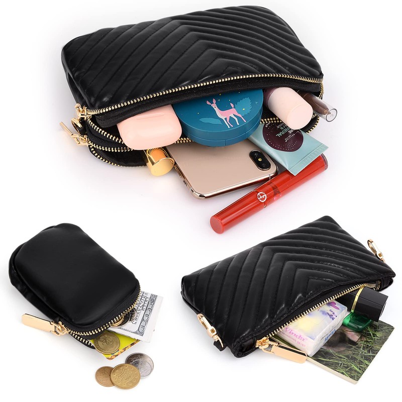 - LARGE CAPACITY - Due to the multi luxury pochette bag's main purse with double zipper closure. It contains 3 inner card slots and 1 inner zip pocket. Mini purse and small pouch also come with zipper closure, safe and easy to use. Your cellphone, cash, credit cards, ID cards, house keys, ear phones, lipsticks, makeups and other essential items can be well organized in this crossbody bag.