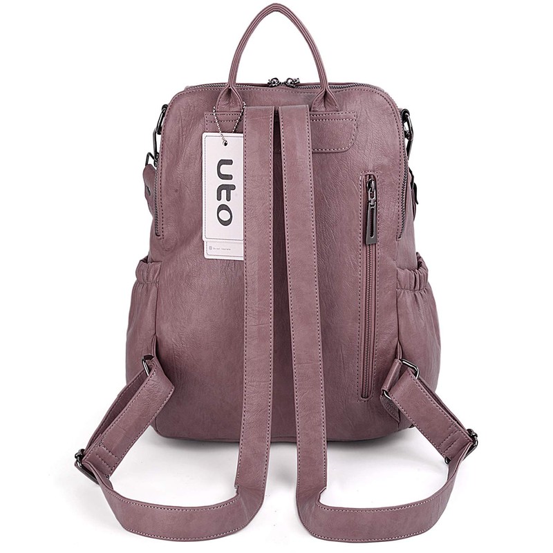 - HIGH QUALITY - Soft synthetic leather with heavy duty zipper hardware. Detailed Double streamlined stitching. Full-lined coffee color fabric lining. 1 top handle, 1 shoulder strap and 2 adjustable back straps.