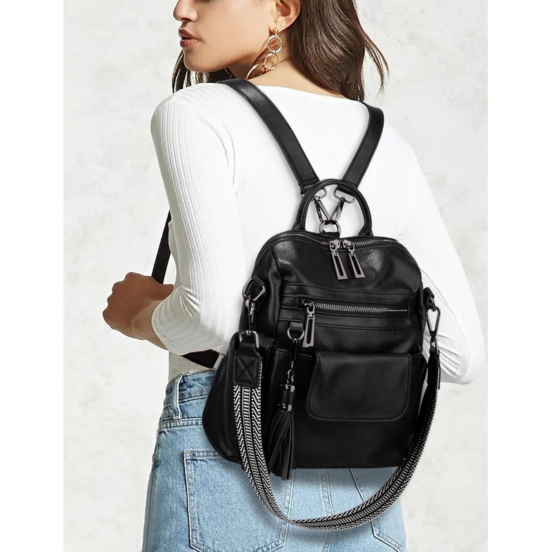 UTO Women's Backpack PU Washed Leather Fashionable Multifunctional Backpack with Tassel Design Casual Shoulder Bags Women Bag Multiple Compartments School Backpack Women's Backpack Handbags, 1256