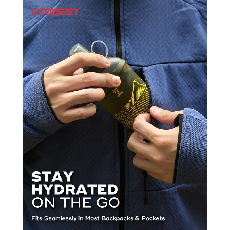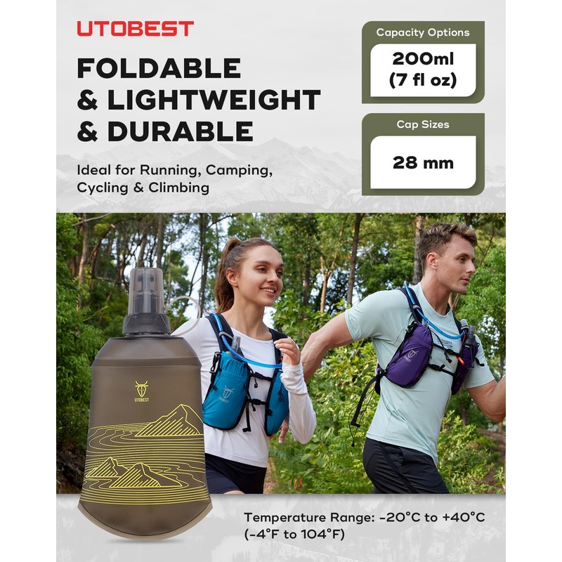 UTOBEST Soft Flask Collapsible Running Water Bottle 200 ml, Flexible TPU Folding Running Flask for Hydration Pack, Soft Flask Running Bottles for Hiking 28mm Caliber (Yellow)