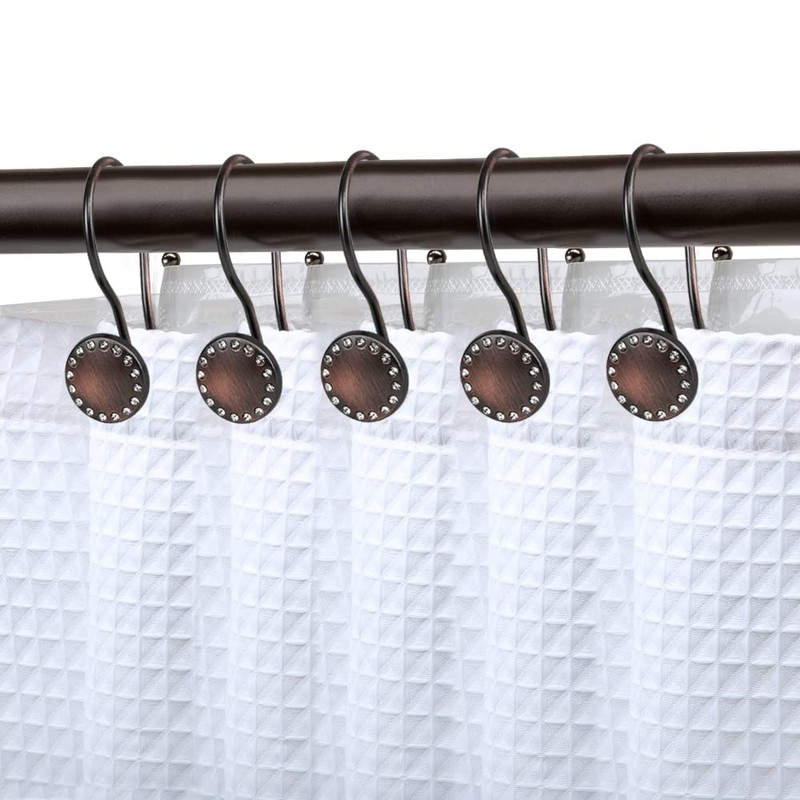 - AVAILABLE COLORS: Amp up your bathroom space and get organized with these shower curtain hooks. Beautifully suited for any bathroom, these crystal-designed hooks come in a wide range of colors; Polished Chrome, Oil Rubbed Bronze, Brushed Nickel, Matte Black, and Gold.