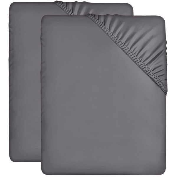 Utopia Bedding, Set of 2 Fitted Sheets, 90 x 200 cm, Grey, Brushed Microfibre Fitted Sheet, 35 cm Deep Pocket