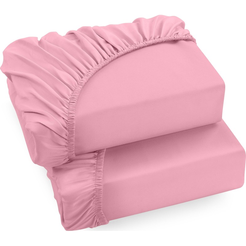 Utopia Bedding, Set of 2 Fitted Sheets, 90 x 200 cm, Pink, Brushed Microfibre Fitted Sheet, 35 cm Deep Pocket