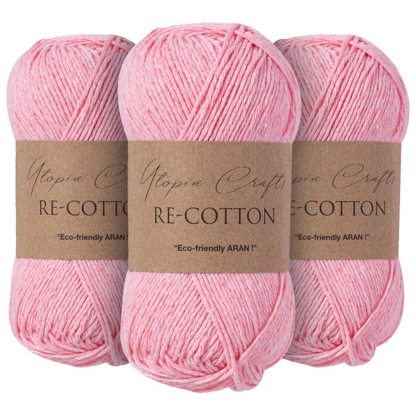 Utopia Crafts Re-Cotton Knitting Yarn 3X 100g (Light Pink)