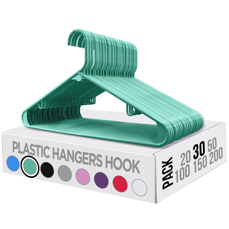 Utopia Home Plastic Hangers 30 Pack - Clothes Hanger with Hooks - Durable & Space Saving Coat Hanger - Heavy Duty Aqua Hangers - Skirt Hangers