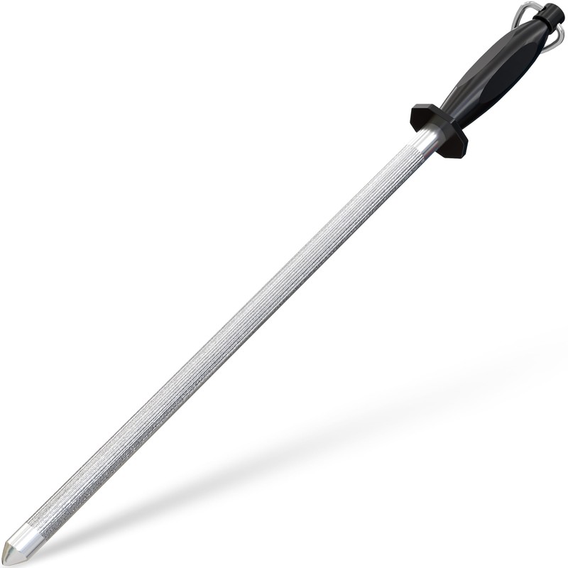 - 12-inch knife sharpening steel rod is for all types of knives, including kitchen, household, sporting and pocket knives; sharpens standard and serrated edge knives