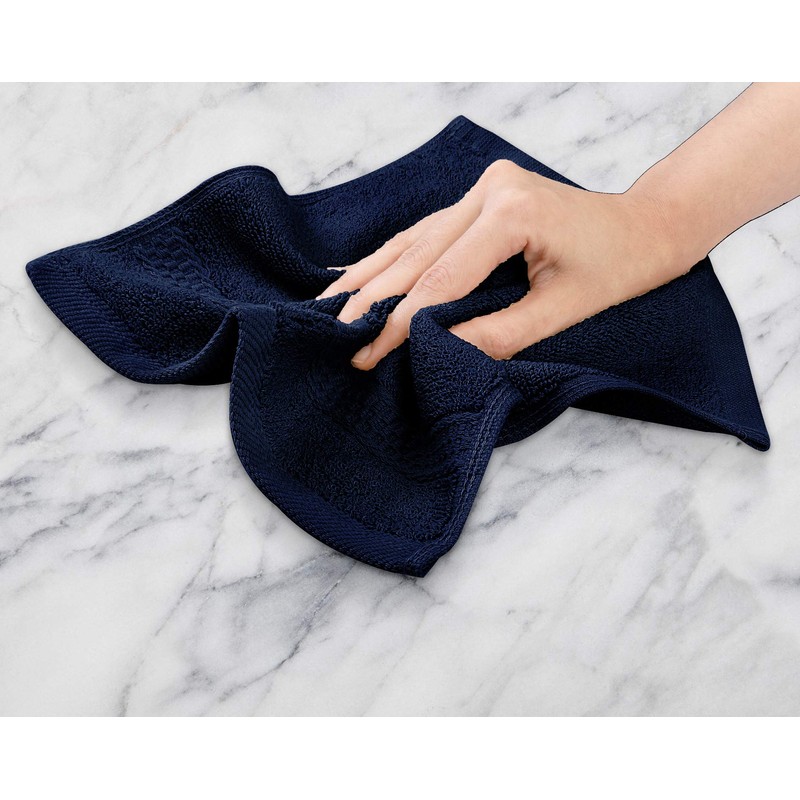- Set includes twelve luxury cotton washcloths in Navy Blue measuring 12 by 12 inches each