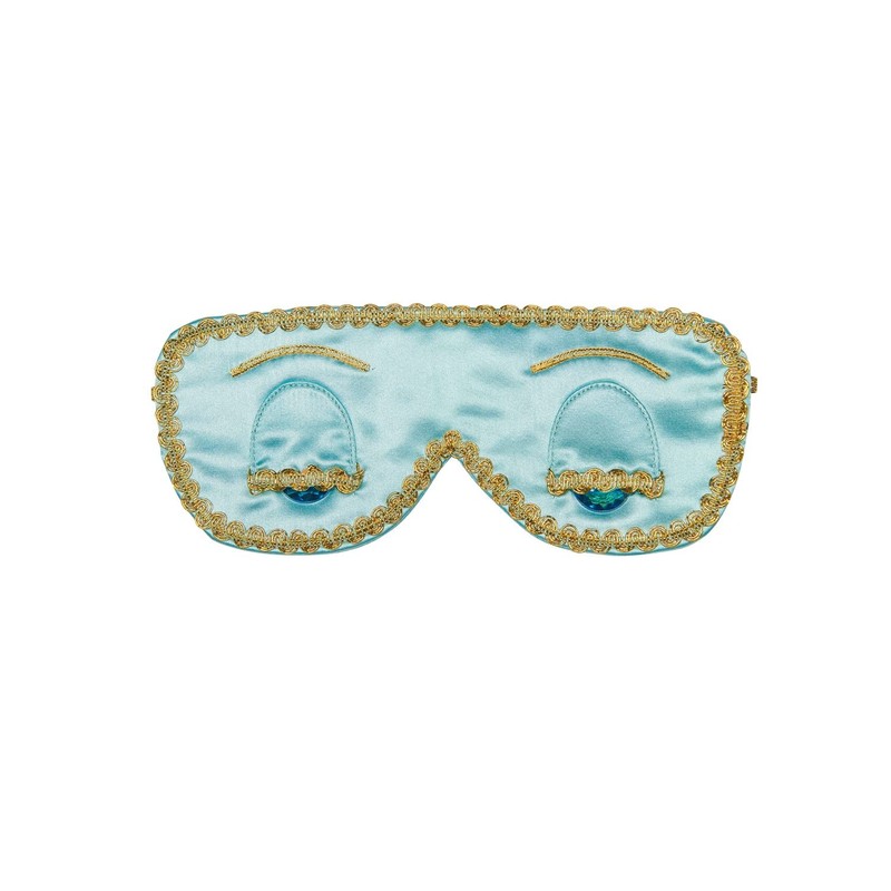 Utopiat Holly Golightly Sleep Mask and Earplug Set | Blue Silk Eye Mask | Elegant Purple Tassel Earplugs | Audrey Hepburn Inspired | Handcrafted | Sleep Accessory Set | Adjustable Gold Elastic Tie
