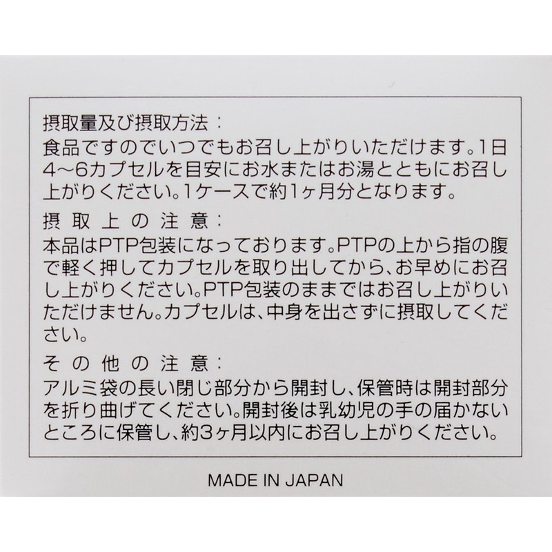 • Use 1 days 4 – 6 capsules). All ingredients derived from purasentaekisu (Pig) ■ gurisin, Caramel, Gelatin, Silicon Dioxide
