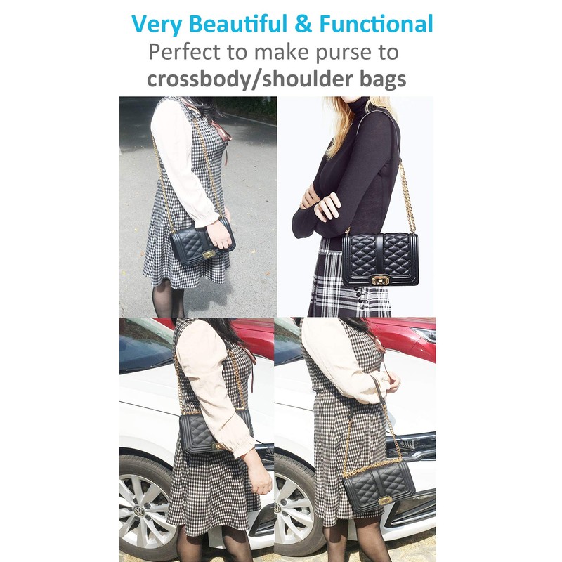 - ❤Multifunctional &Stylish Purse strap: great corssbody chain, very sturdy & easy to change out with your purse/bag/handbag/wallet/clutch handbag/ phone case etc.,added this chain strap to your purse/bag/crossbody, Shoulder Strap Replacement,works great, chain strap can holds up&Secure very well. Bag convert into a longer cross over,Perfect length to wear as a cross body bag (hits right below hip) or can fit great on shoulder bag. So pretty fits perfect.