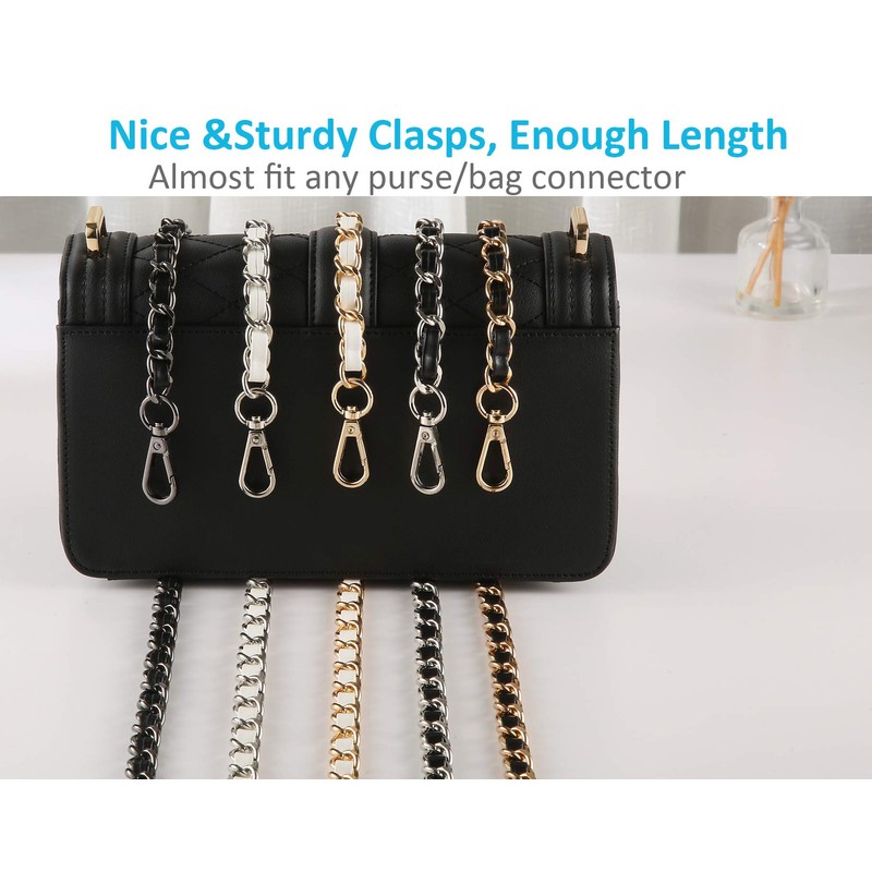 - ❤Very cute and versatile bag strap, handbag chain 47.2" length, Very Strong, Attractive, Good Quality Chain.This strap is a great way to make any purse/bags look better and more expensive &very secure. Added this chain to many kinds of bag,the clasps are nice and small,so they fit any little connector. Use this chain all the time and held up perfectly,The strap can dress your handbag/purse up and made it look really elegant.