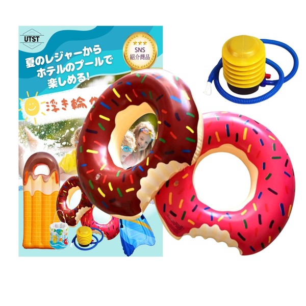 - Contents: 35.4 inches (90 cm) Brown Donut Float x 1 + 35.4 inches (90 cm) Pink Donut Float x 1 + 1 Inflatable Pump
