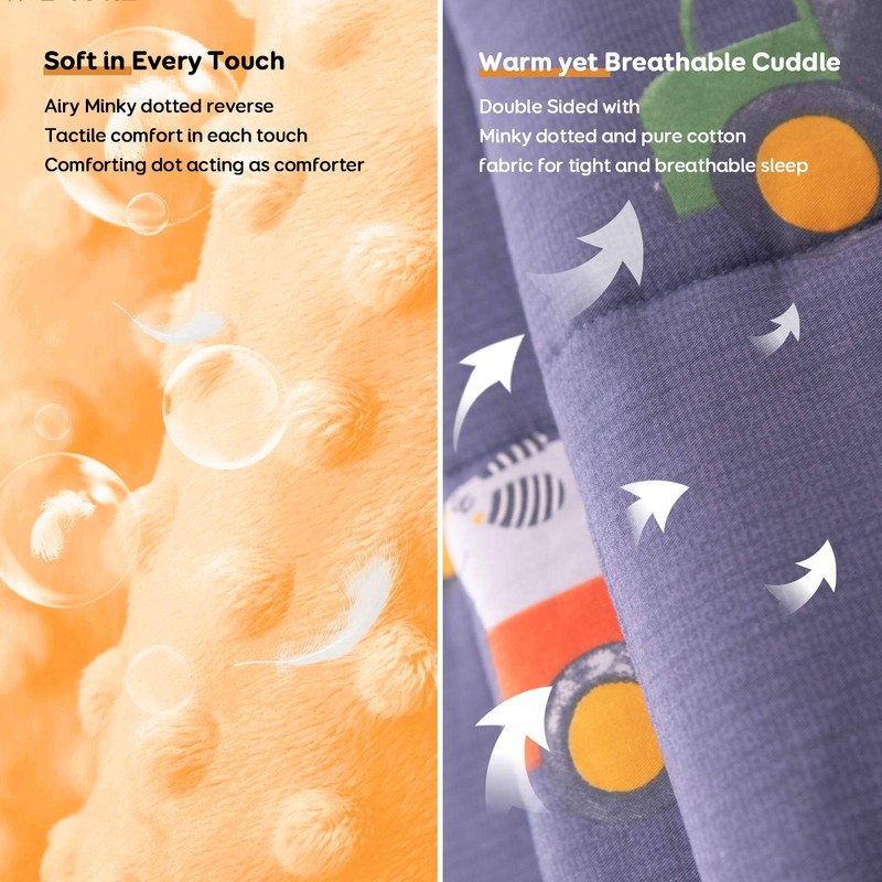 Uttermara dual sided Kids weighted blanket offers children tactile comfort to help them calm down and fall into sleep in a short time with the breathable cotton face keeping your sweating little one dry and comfortable while the super soft minky dotted and skin-friendly reverse endowing extra sense of security. Suitable for all-season use.