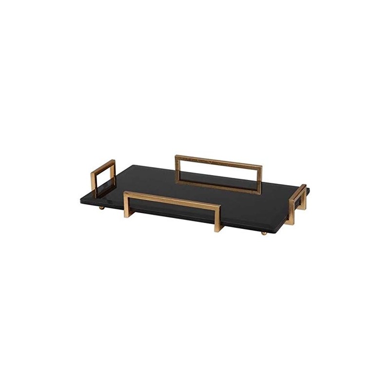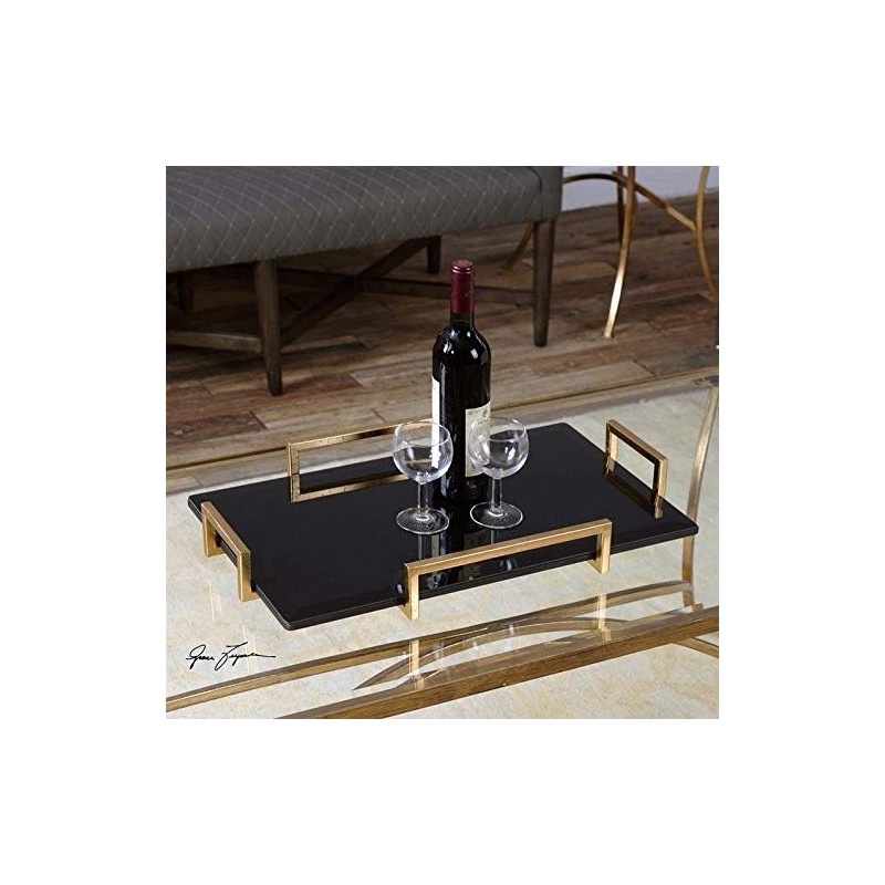 - Finish/Frame: lightly antiqued gold leaf with beveled black glass interior.