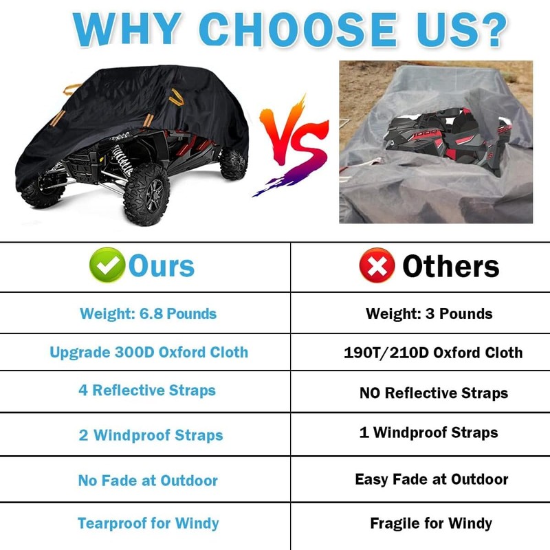 - HIGH STANDARD CUSTOMER SERVICE - These UTV accessories is also a wonderful gift for friends, family, and co-workers. Choosing our UTV cover to ensure that your UTV is always in a new state. Your satisfaction is our TOP Priority and we'll help you with any questions! If you are not sure about the size or model, you can feel free to contact us by email.