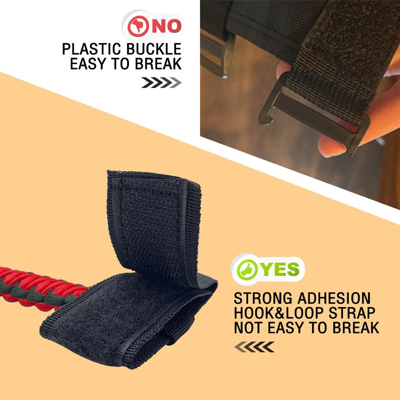 Woven with 7-core nylon paracord, soft and comfortable grip. The heavy duty ATV grab handles ensures your family and guests feel secure as they hold on and with the hook & loop strap, the handle will hold securely to your roll cage.