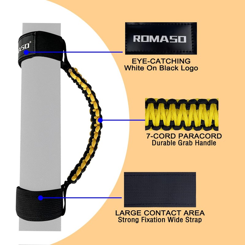 • Heavy Duty Paracord UTV Grab Handles: Woven with 7-core nylon paracord, soft and comfortable grip and Greatly increases the tensile force that can be borne
