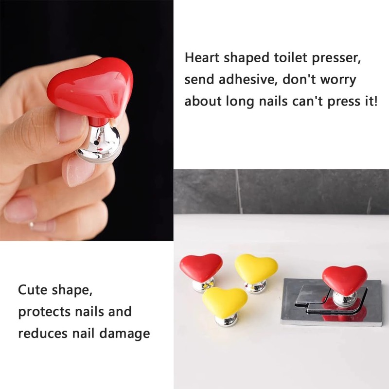 UtySty 4 Pack Toilet Push Button Pusher Heart Shape Adhesive Press Extension Handle Helper Long Nail Saver Gadgets for Toilet Flush Valve Button Smart Bidet Toilet One Piece Toilet Bathroom